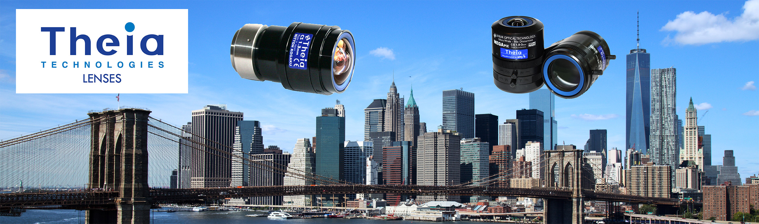 Theia Technologies provides high quality megapixel rated lenses for video security and machine vision applications - specializing in ultra wide angle lenses with very minimal optical distortion. Their patented, award-winning Linear Optical Technology® corrects barrel distortion and improves image resolution over typical lenses, while also eliminating the "fisheye" effect. This process allows straight lines to be straight lines in the image. True 4K vari-focal lens models are now offered - including fully motorized versions.